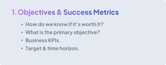 Align your team on clear outcomes and KPIs before spending on any AI project