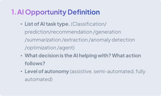 The AI Pain Points Canvas is a one-page worksheet that guides you to:
