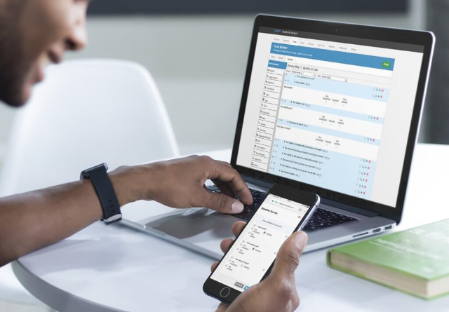 Patients’ symptoms, side effects, medication timing, and other questions are registered on an electronic system during a clinical trial as electronic patient-reported results (ePRO).